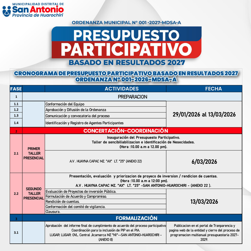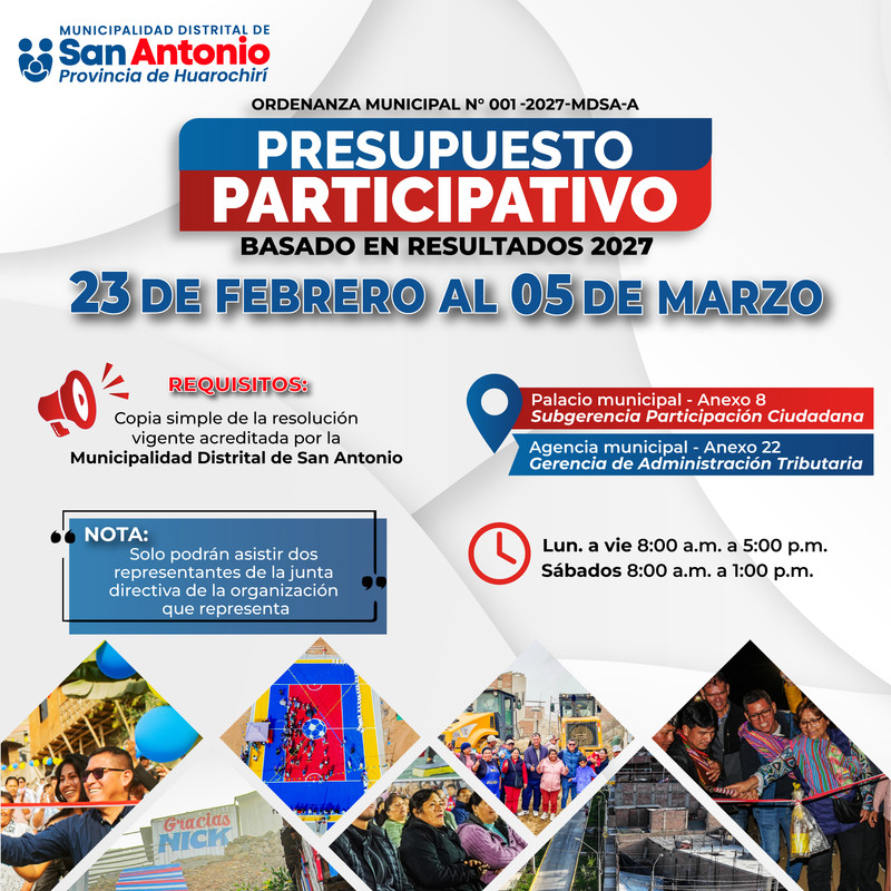 La Municipalidad Distrital de San Antonio brinda un servicio gratuito de orientación y consejería familiar, con el objetivo de fortalecer a las familias mediante la promoción de una crianza saludable, el respeto de los derechos y una comunicación efectiva en el hogar.
